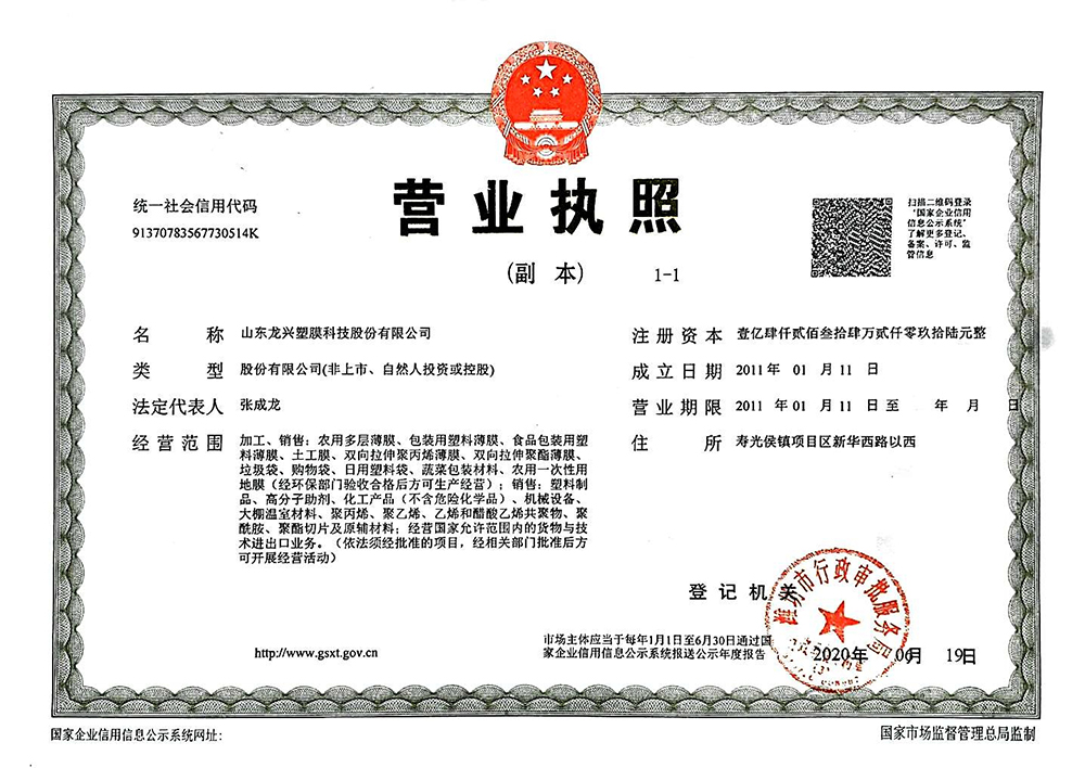山東龍興塑膜科技股份有限公司前身為山東壽光龍興農(nóng)膜有限公司組建于2011年,2018年10月重組,目前是壽光市國(guó)有控股公司、高新技術(shù)企業(yè),是專(zhuān)業(yè)生產(chǎn)高檔農(nóng)用薄膜、工業(yè)用薄膜的企業(yè),是一家以產(chǎn)品制造為主,集科研開(kāi)發(fā)、產(chǎn)品設(shè)計(jì)、技術(shù)服務(wù)于一體的綜合性企業(yè)。公司現(xiàn)有職工228人,各類(lèi)工程技術(shù)人員97人,管理人員20余人,注冊(cè)資金14234.2096萬(wàn)元,總資產(chǎn)102314萬(wàn)元,目前是壽光市國(guó)有控股公司、高新技術(shù)企業(yè)。公司是中國(guó)塑料加工工業(yè)協(xié)會(huì)農(nóng)膜專(zhuān)業(yè)委員會(huì)會(huì)員單位,中國(guó)復(fù)合材料工業(yè)協(xié)會(huì)會(huì)員單位,中國(guó)塑料加工工業(yè)協(xié)會(huì)雙向拉伸聚酯薄膜專(zhuān)業(yè)委員會(huì)會(huì)員單位...